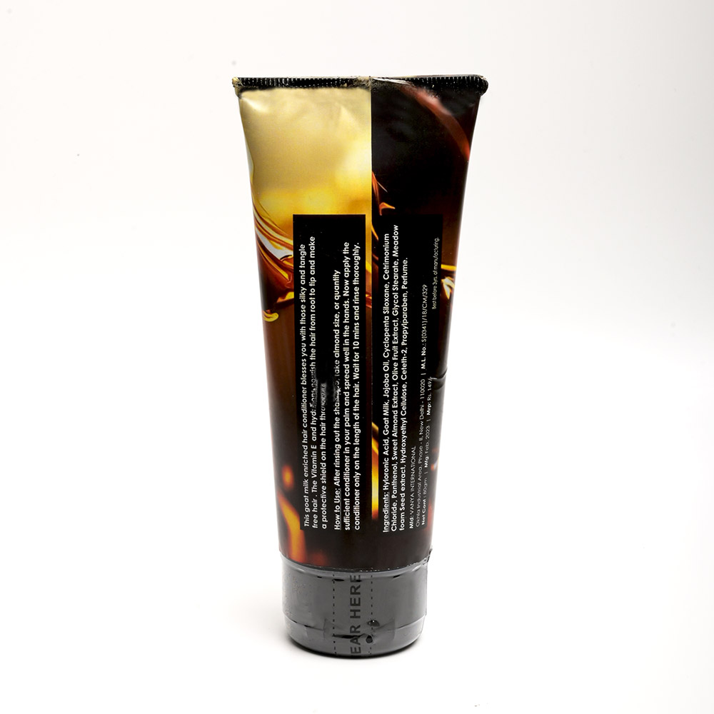 Ingredients: Hyaluronic Acid, Goat Milk, Jojoba Oil, cyclopentasiloxane , Cetrimonium Chloride, Sweet Almond Extract, Olive Fruit Extract, Glycol Stearate, Meadow foam Seed extract, Propyl paraben & Perfume.